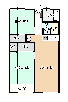 | 間取り | 2LDK | 間取り詳細 | 2LDK (和:4.5畳/和:7.0畳/LDK:11.0帖) |